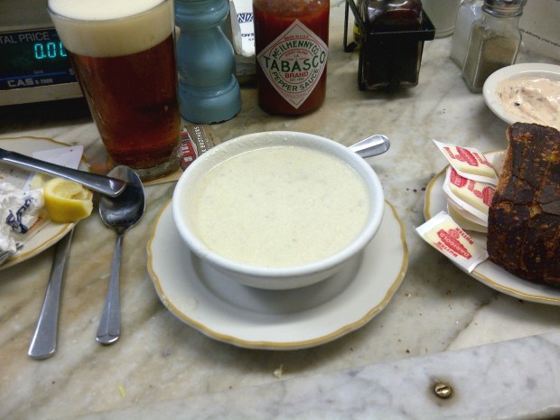 Throughout our late lunch we were drinking Anchor Steam drafts. Even though we waited a long time before sitting down we were not pressured by anyone to eat fast and exit. It appears that once you have your seat you’re entitled to sit as long as you want as long as you’re eating. When we first sat down I started to give our entire order but the guy told me to hold on a sec while he transferred our beers from the plastic cups we were drinking outside to frosted glasses and topped them off. Once that was done he asked what we wanted and only took one order at a time. Oysters first then let us know if you want anything else, he said. The entire time we were there the staff was very courteous and would get you anything. One woman who was waiting on line stuck her head in and asked if they could reserve the last sea urchin they had since she didn’t get them in Texas. They wrote “sold” on a napkin and stuck it on the last one. This kind of friendly service at what is clearly a local place far from the tourist areas serving some fresh-off-the-boat seafood is what makes looking for good food while traveling so much fun! Sometimes there are clunkers but then there are the times you get rewarded like this.
