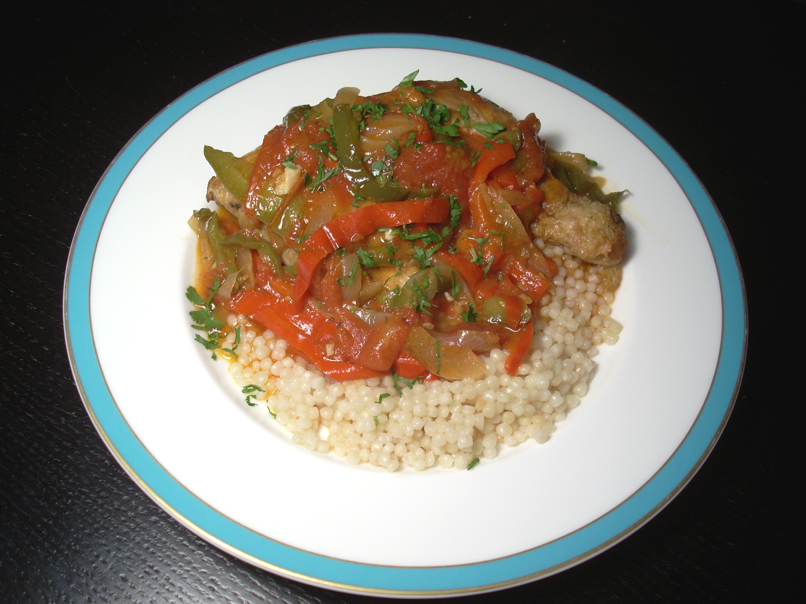 Another addition I’ll make to my Basque style chicken is citrus. Like any home cook I like to incorporate what’s in season and right now we’re getting lots of navel oranges, honeybells, tangerines, etc., in the stores. Use them! Let the sauce simmer down to thicken and serve this dish with some cous-cous, rice, or polenta for a hearty mid-winter chicken dinner.
