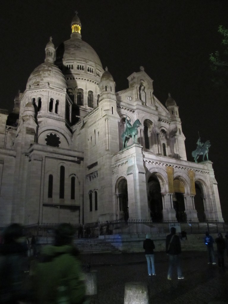 Sacre Coeur looks very cool at night! I was there during the daytime just before Christmas and there were guys waiting halfway up the steps trying to get the tourists to let them put string around their fingers. Don’t know what the trick was, but they were a bit persistent. I’d imagine they’d be more intimidating at night!