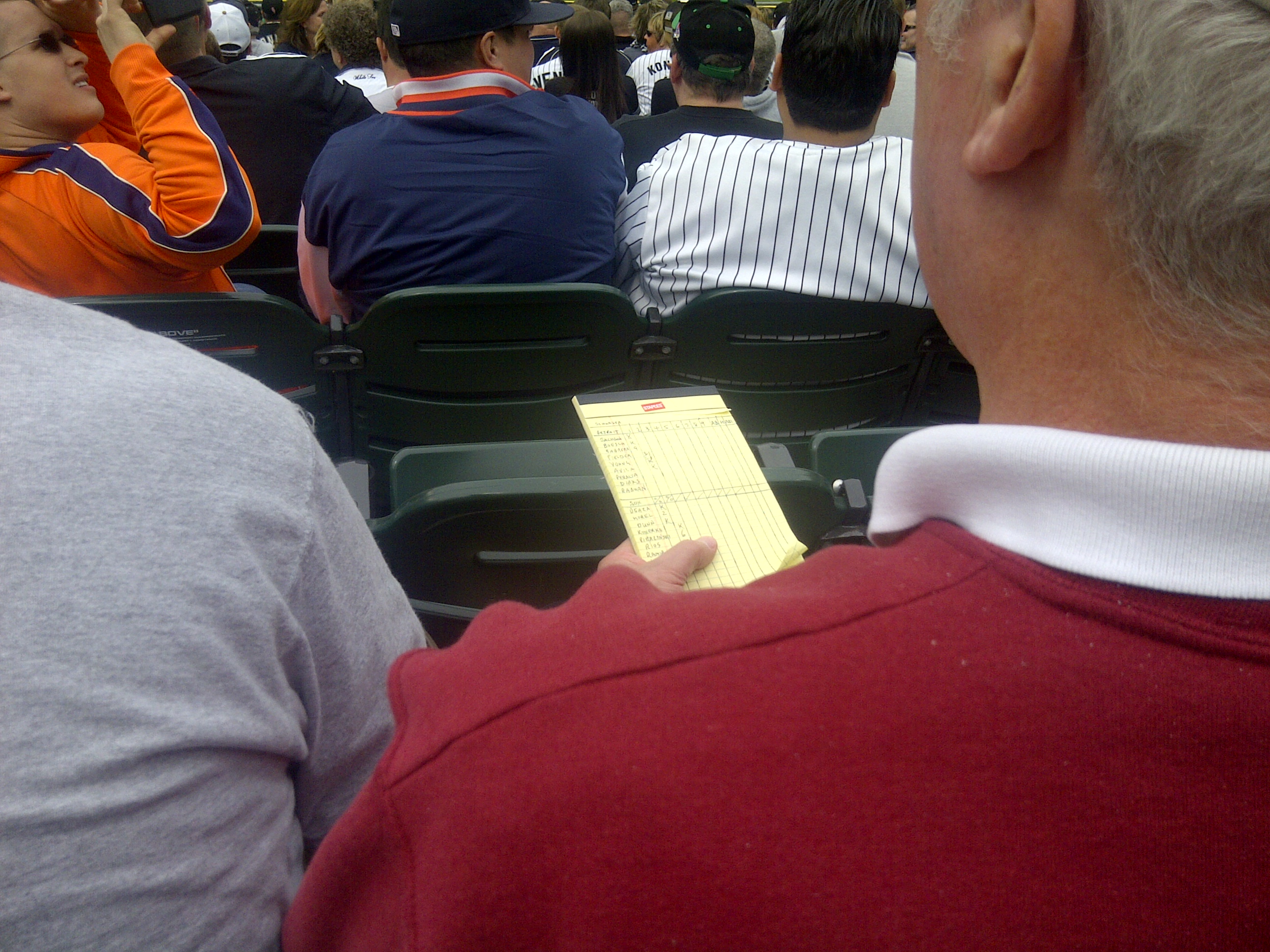 During the game I noticed the fans seemed to be actually paying attention to the game and the players. As a baseball fan I really appreciated this. I guess I’ve been to way too many Nationals games in DC where the crowd comes late, leaves early, and no one watches the game. Sitting directly in front of me on Friday were these two old timers who were keeping score, but they brought their own pad to do it on! Impressive. Not to mention the fact we were sitting in center field. I’m pretty sure you’d be hard pressed to find anyone keeping score in the Wrigley bleachers.