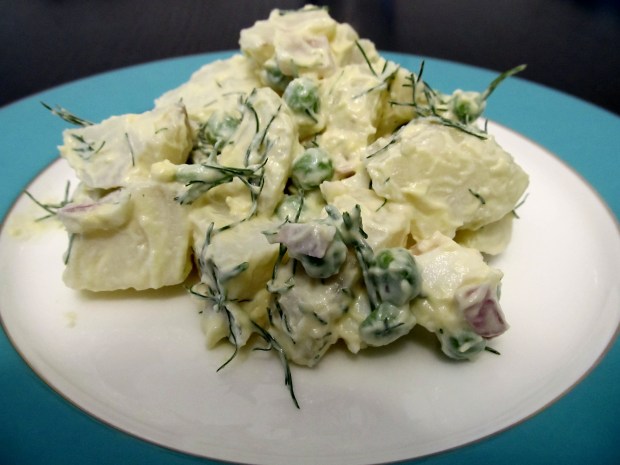 This looks delicious and reminds me of a dish that’s popular among my friends. We call it Armenian Chicken Salad, however the most Armenian thing about it is that the recipe comes from an Armenian friend. It’s chicken. potatoes, dill pickles, peas, hard boiled eggs (but I substitue corn since I’m allergic to peas), mayo and extra dill. It’s so so good.