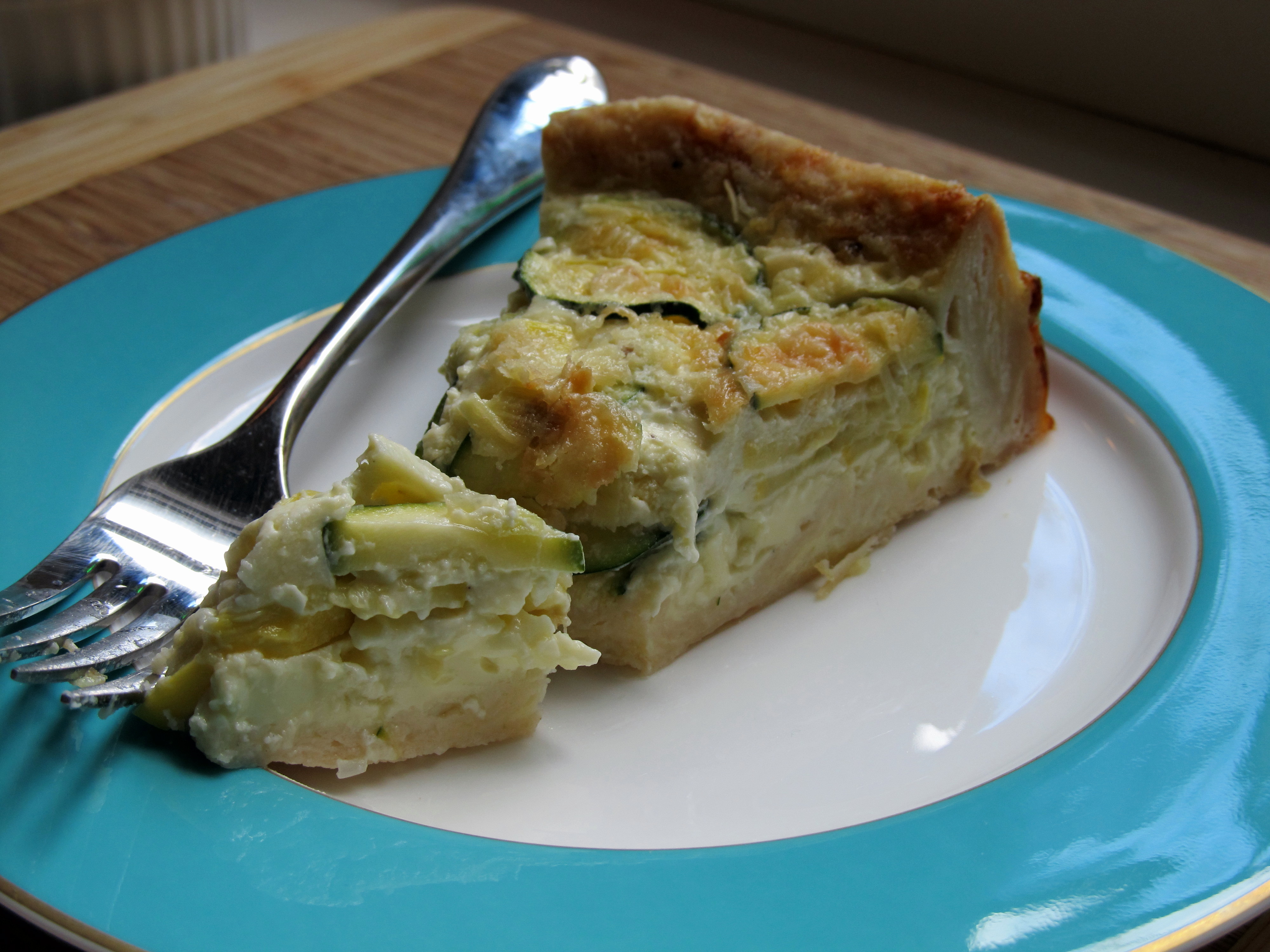 Zucchini and yellow squash are flooding the summer markets so here’s another good light, summery dish to bake for a brunch or dinner. Making a quiche is much easier than you think. It’s really a savory tart but with a bit more custard which makes it good enough for an appetizer or main entrée. Quiche is also great for summer because it can be made ahead and is best served totally cooled with a nice glass of your favorite chilled white wine.