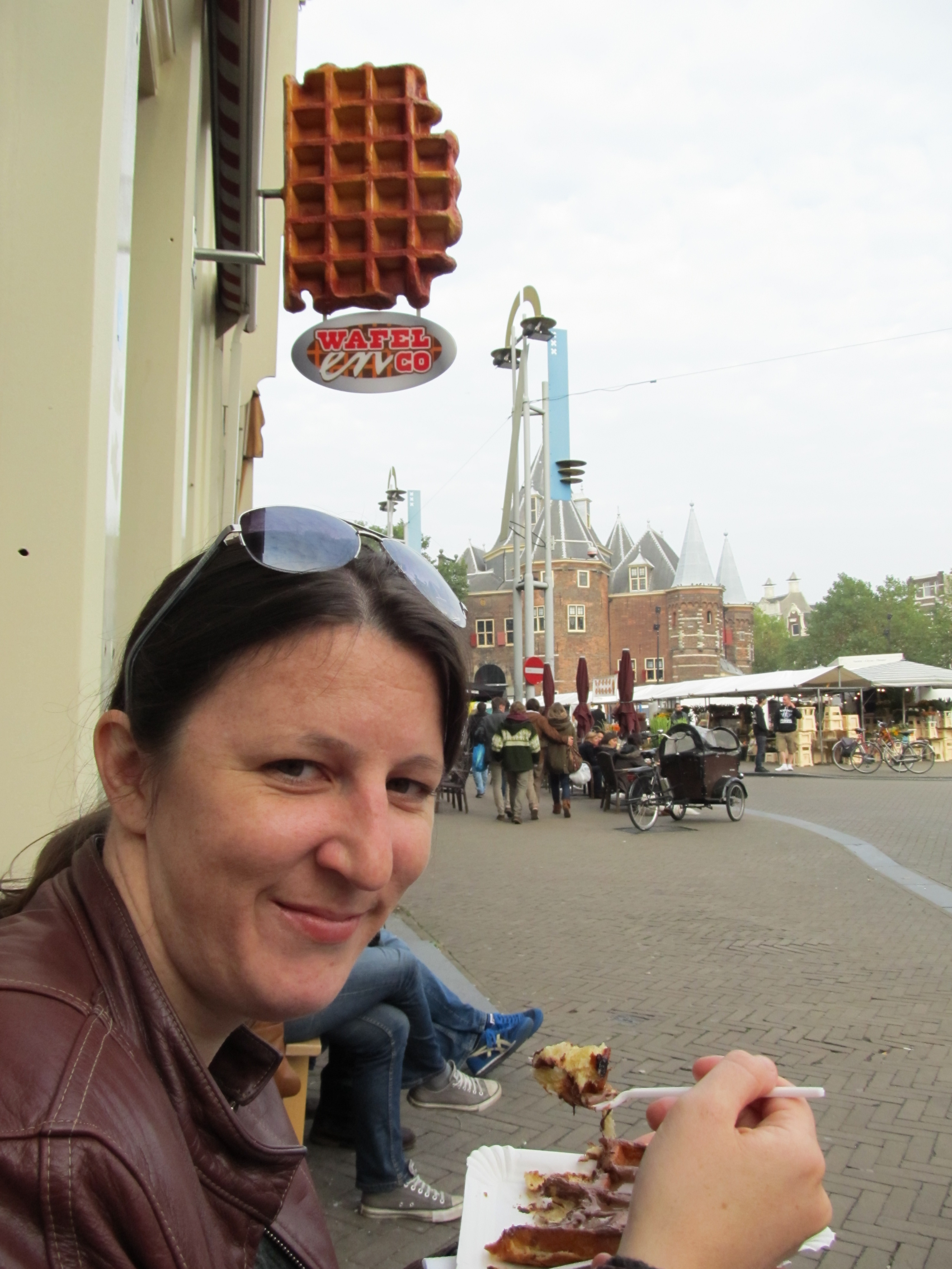 Wouldn’t be one of our vacations without searching out some good food and we ate really well in Amsterdam! There’s always the frites with mayo and waffles with some Nutella (somehow these shops are always located either next to or across the street from one of those “coffee” shops) which we did indulge in (frites and waffles, not the “coffee” shops), but we also found this great little bistrot/restaurant right down the street from where we were staying called Buffet van Oudette. On Mondays they have a special prix fixe menu which includes 3 courses and glass of cava for 30 euros and it’s definitely worth it! It’s been a week but I still can’t forget the beurre blanc sauce which accompanied the cod main entrée. Sooooo gooooood. Everything was really delicious. Although they’re closed on Tuesdays we did squeeze in lunch on our last day before heading off to catch our ferry. When we go back to Amsterdam I am definitely making sure we are there for Monday night dinner!