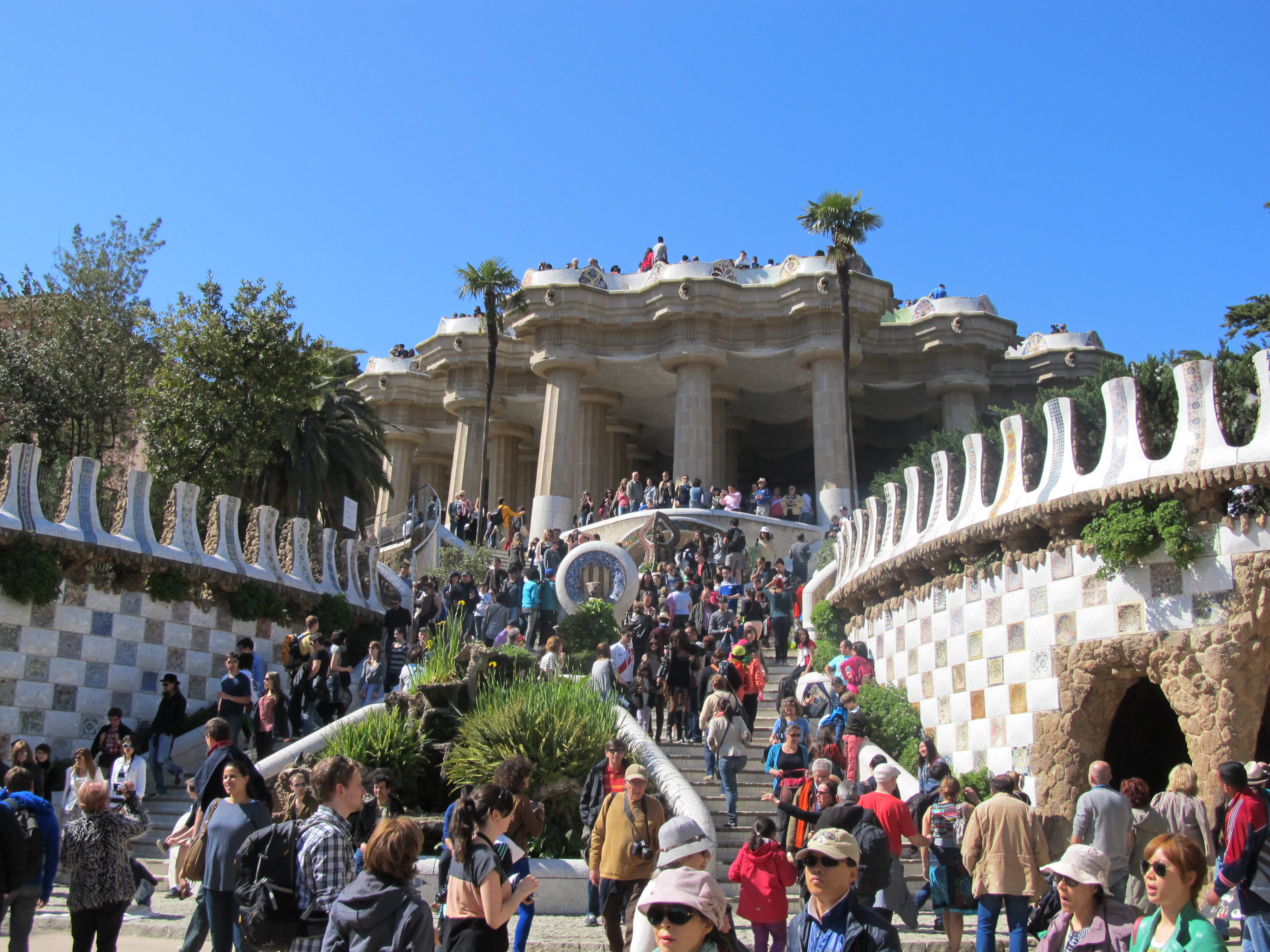 What else could we do in our short stay? Our only full day in Barcelona was on Easter Sunday, so many of the shops and museums were closed but restaurants and parks were open so we decided to hop on the metro and go to Guell Park. It’s up in the hills and has great views of the city. The park was designed by Antoni Gaudi, the famous Catalan Modernist whose works can be seen throughout the city (the Sagrada Familia is probably his most well-known design). It was a beautiful day with lots of sunshine and as you can see everyone was out enjoying the day. The park was full of people but we were able to find some corners where we could get away from the crowds. It’s a pretty big park with lots of trails and we spent a few hours there just walking around and taking it all in.