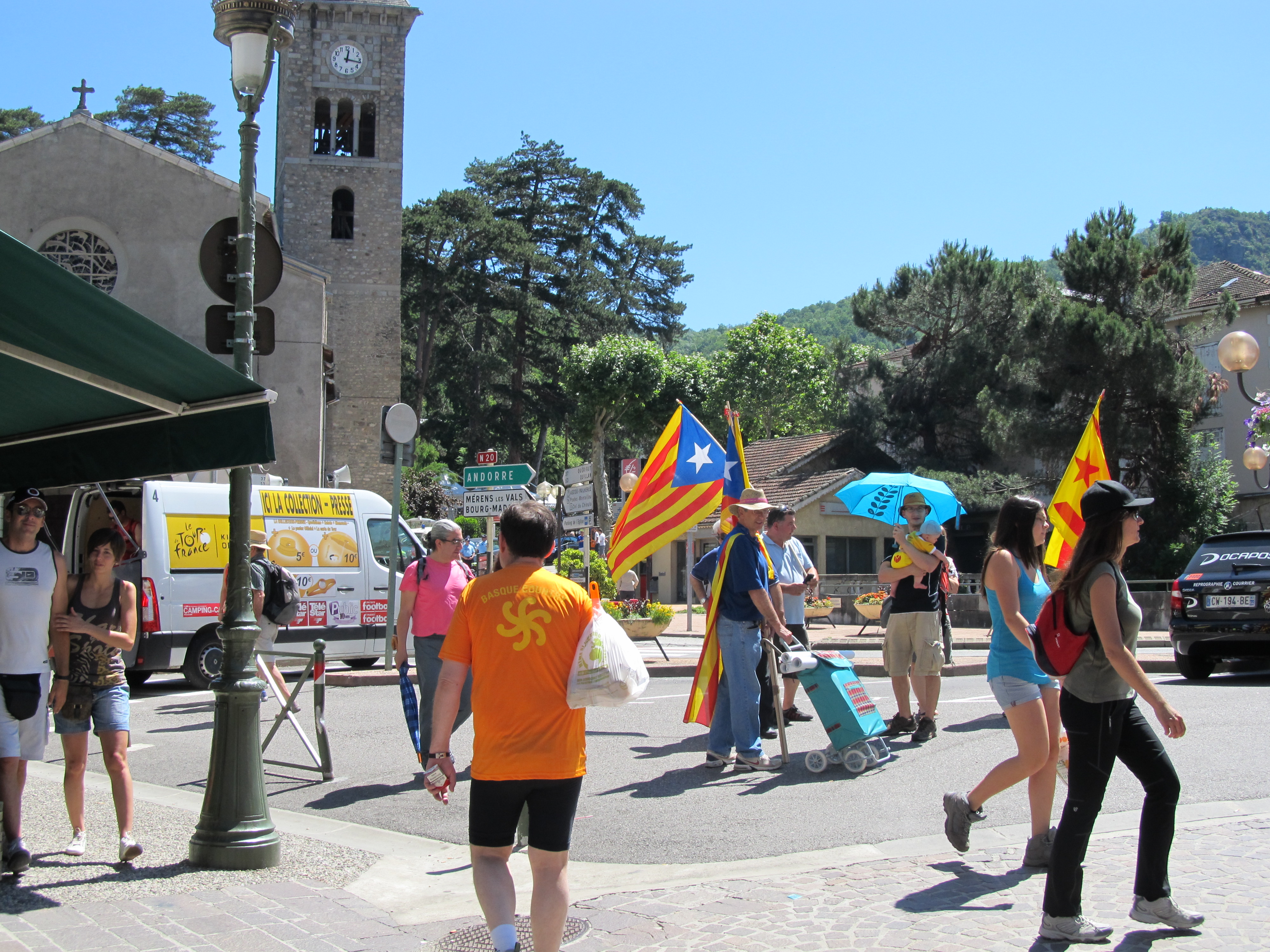 From my last post you may have guessed correctly we’re on vacation.  Right now we’re relaxing on the Costa Brava in Begur, Spain but before coming here we journeyed up into the Pyrenees for the main reason of the trip, seeing a mountain stage of the 100th Tour de France (maybe that should be raison d’etre then).  The stage we saw? Stage 8 from Castres to Ax 3 Domaines, about 200 km.  The first mountain stage of the Tour and a mountaintop finish at a ski resort.