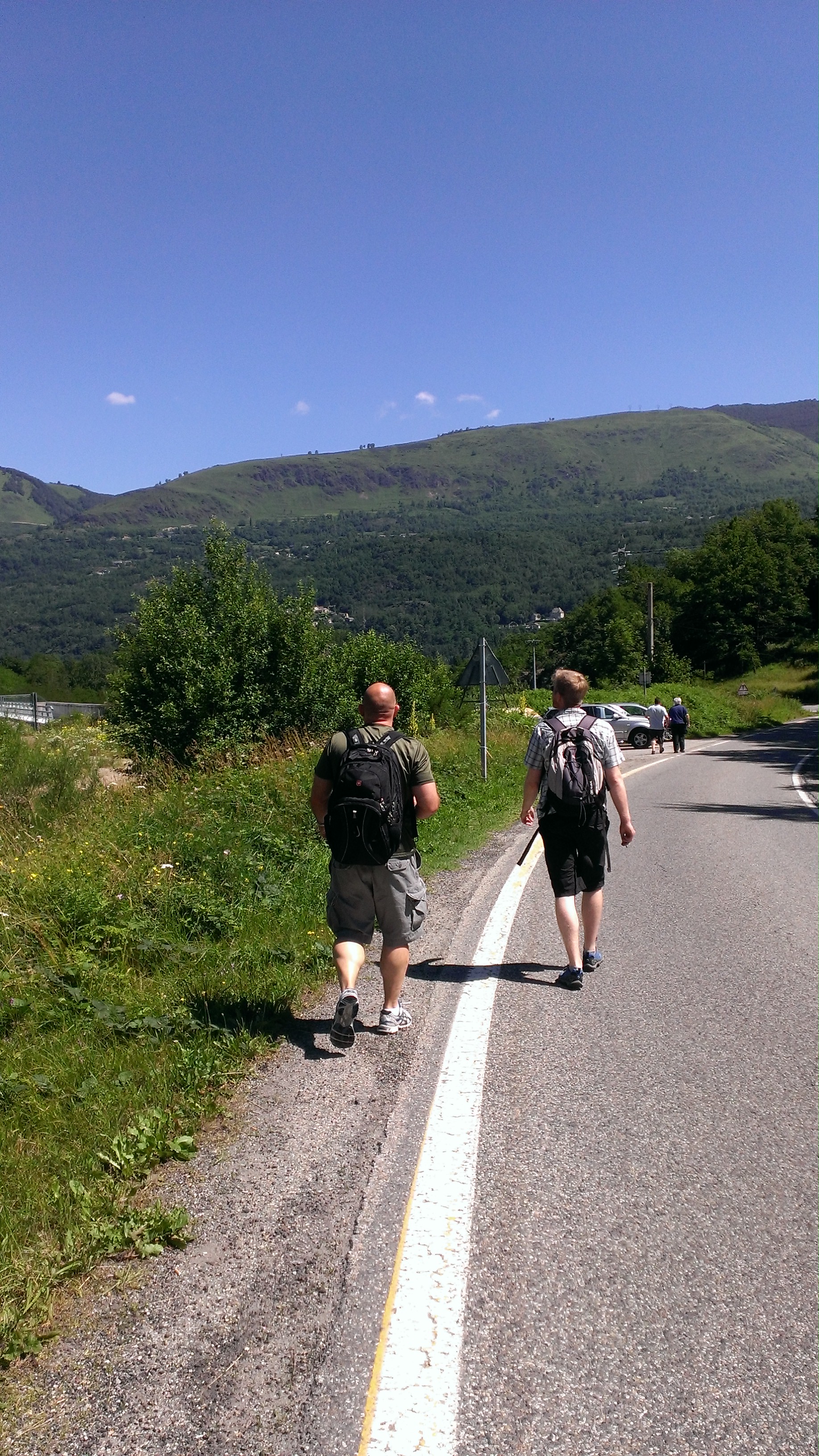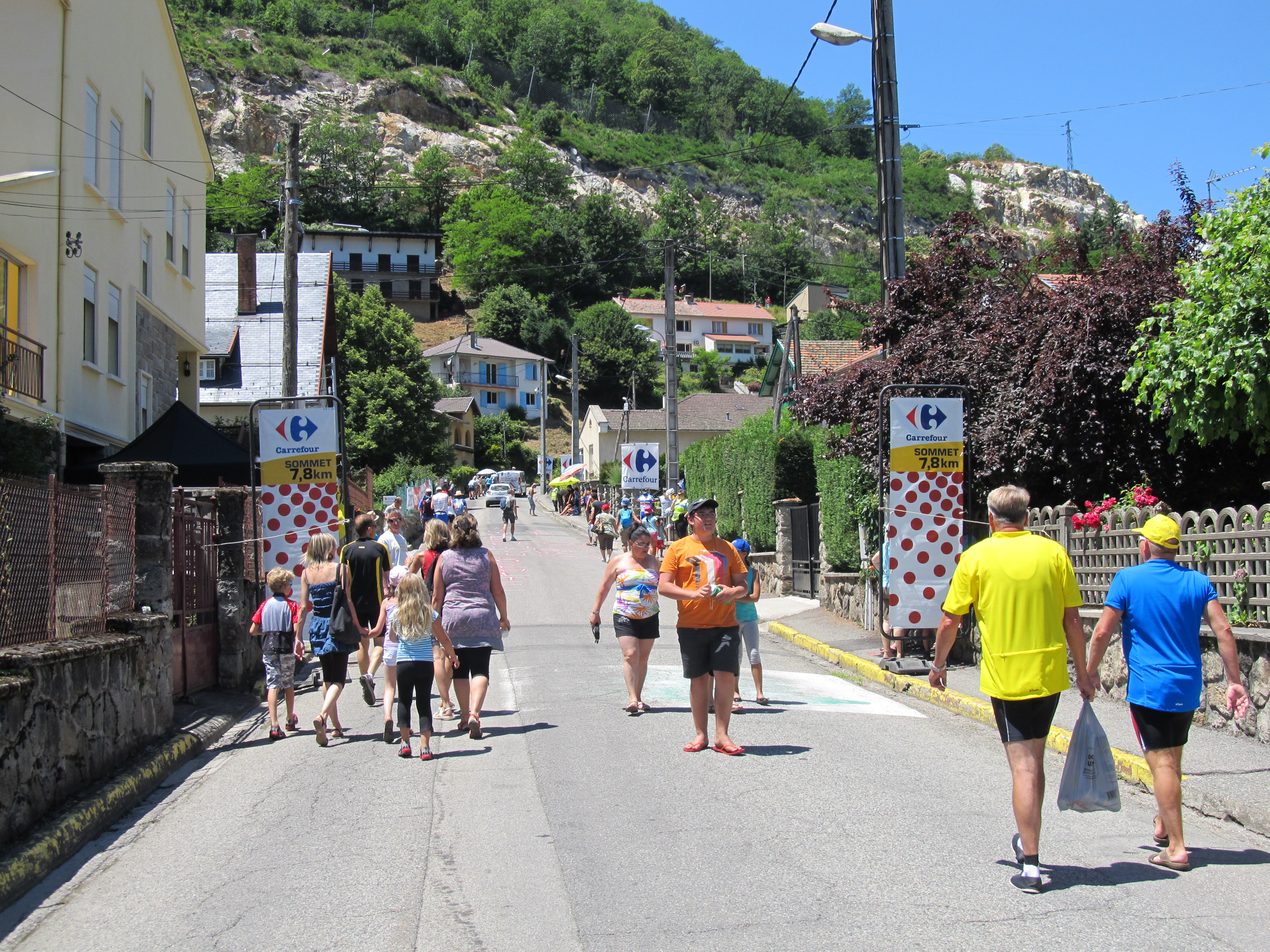 Since we had parked on the road going away from Ax les Thermes towards Spain and not the next Stage starting point we were able to get out as soon as we got back to the car.  On the walk to the car we even saw some more riders going up our road on a cool down ride.