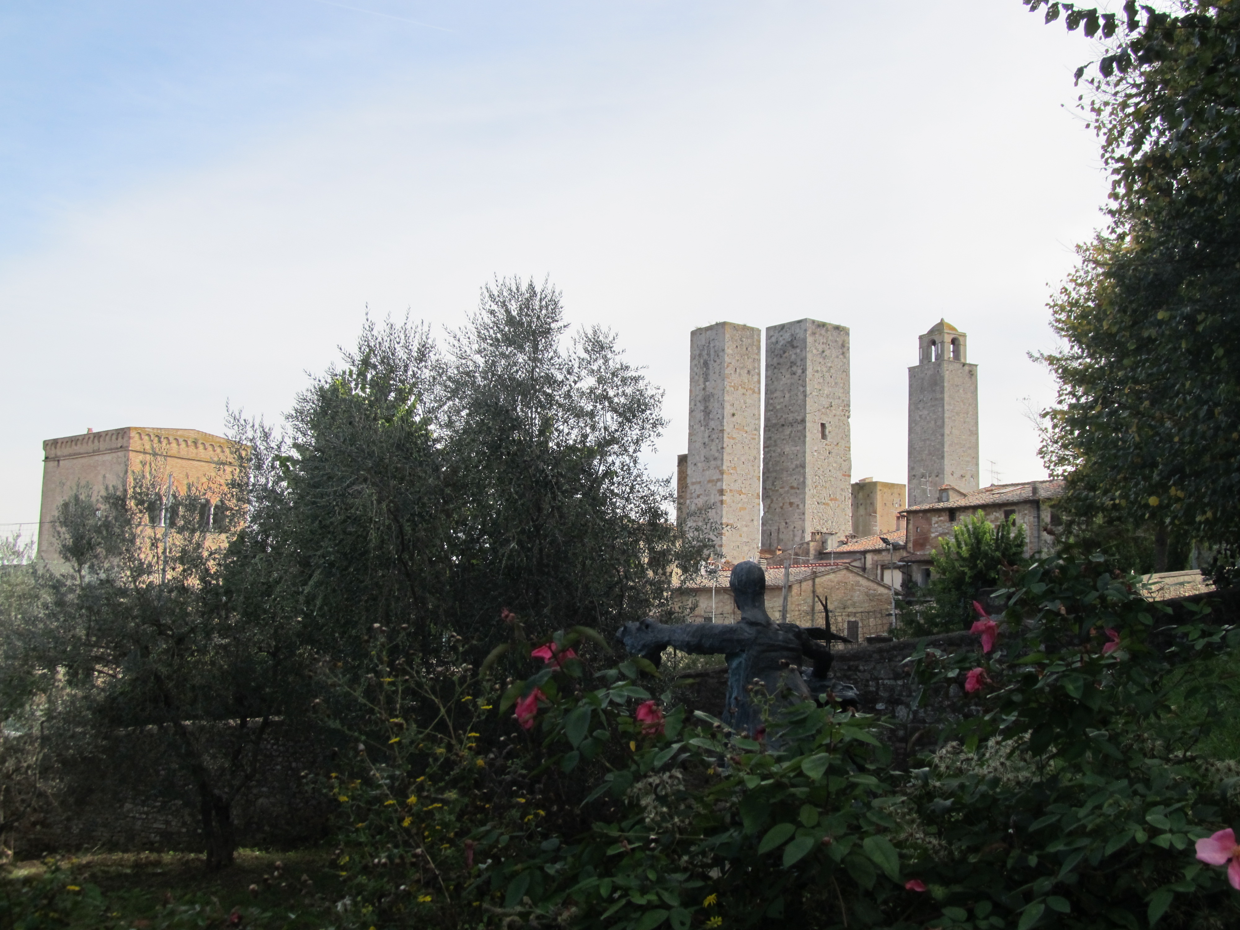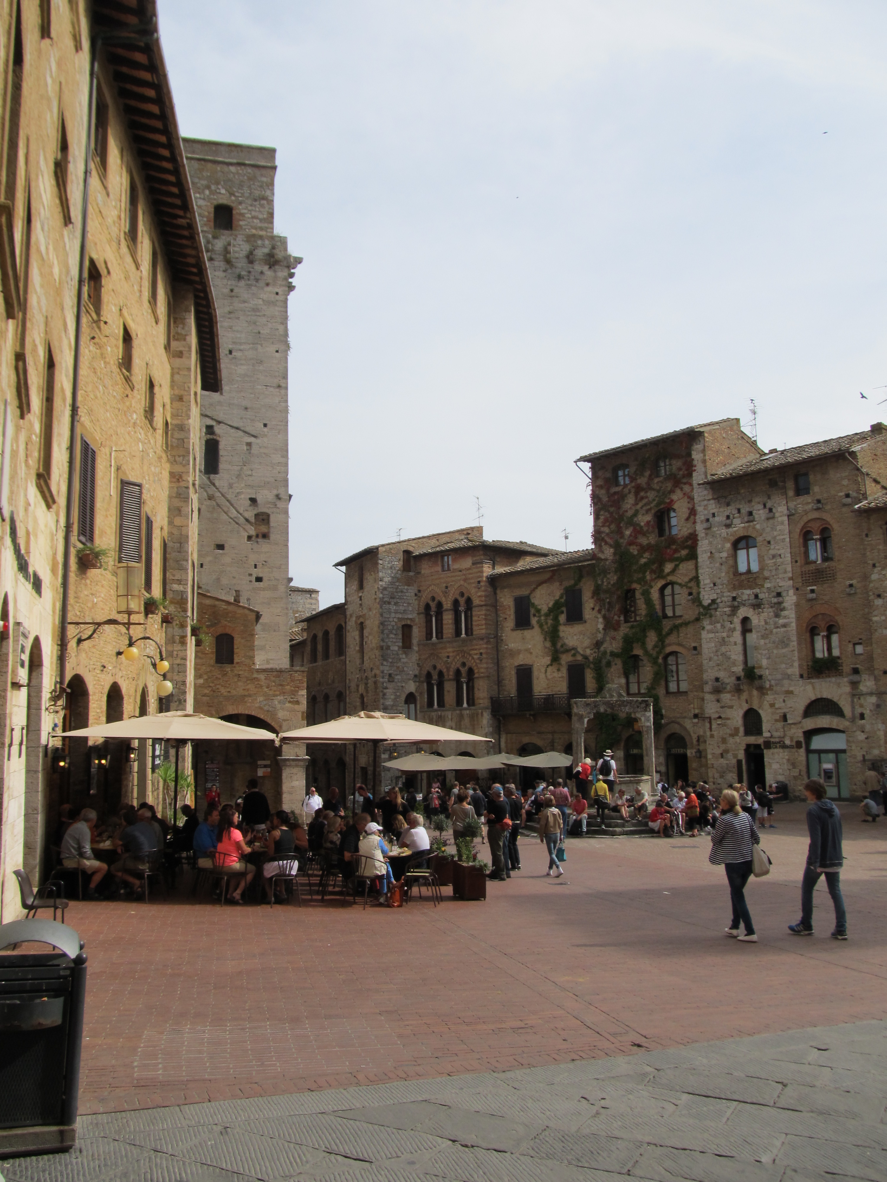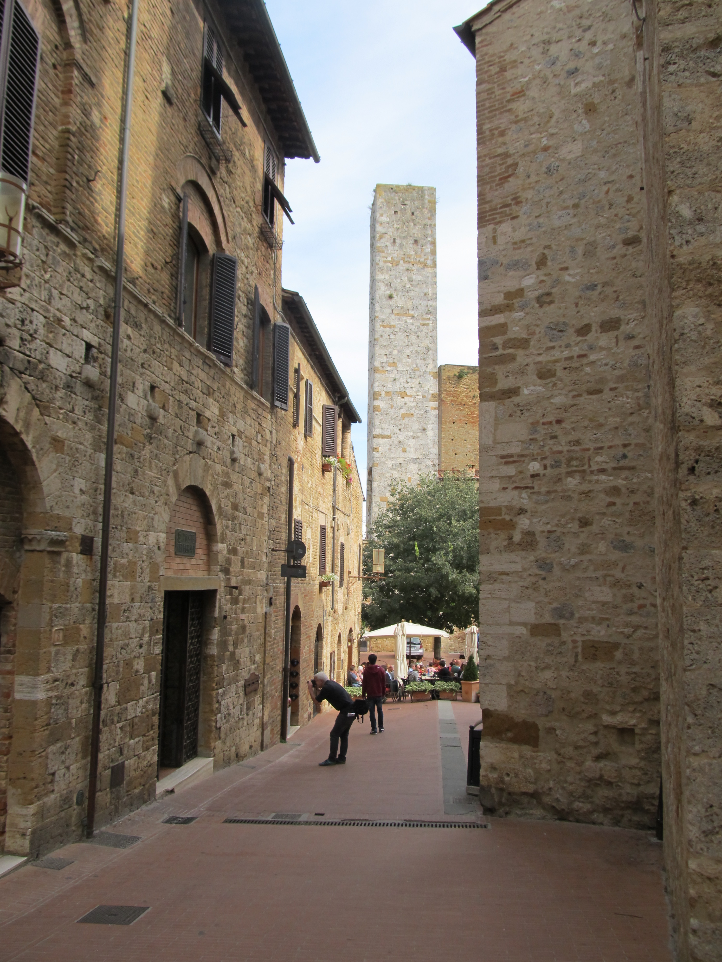 Not bad eh? So what about the town we were staying in? San Gimignano is a small village known for its towers. Only 14 towers remain standing from 72, which helped give it the nickname of ‘Manhattan of the Middle Ages.’ Because of this, San Gimignano is one of the more popular day trips for tourists. On our way back into town from our hike we stopped at an overlook and sat watching the tour buses roll up the hill. It was quite the sight. The good thing about day trippers is they’re gone by night so we were able to enjoy some good dinners in relative peace and quiet. Neat place.
