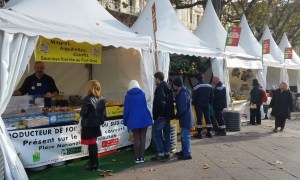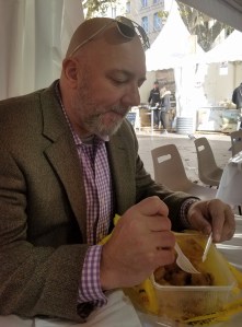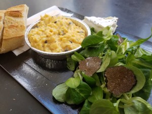 As we were walking around by the Papal Palace we noticed workers setting up a big market hall tent for the weekend. Avignon was having a Weekend Gastronomique! Luckily for us, it began on Friday at lunch time so we’d be able to check it out. It was a market promoting food, wine, and products from all over France, not just Provence. We couldn’t resist lunch from the truffle stall offering up scrambled eggs, cheese, and salad.