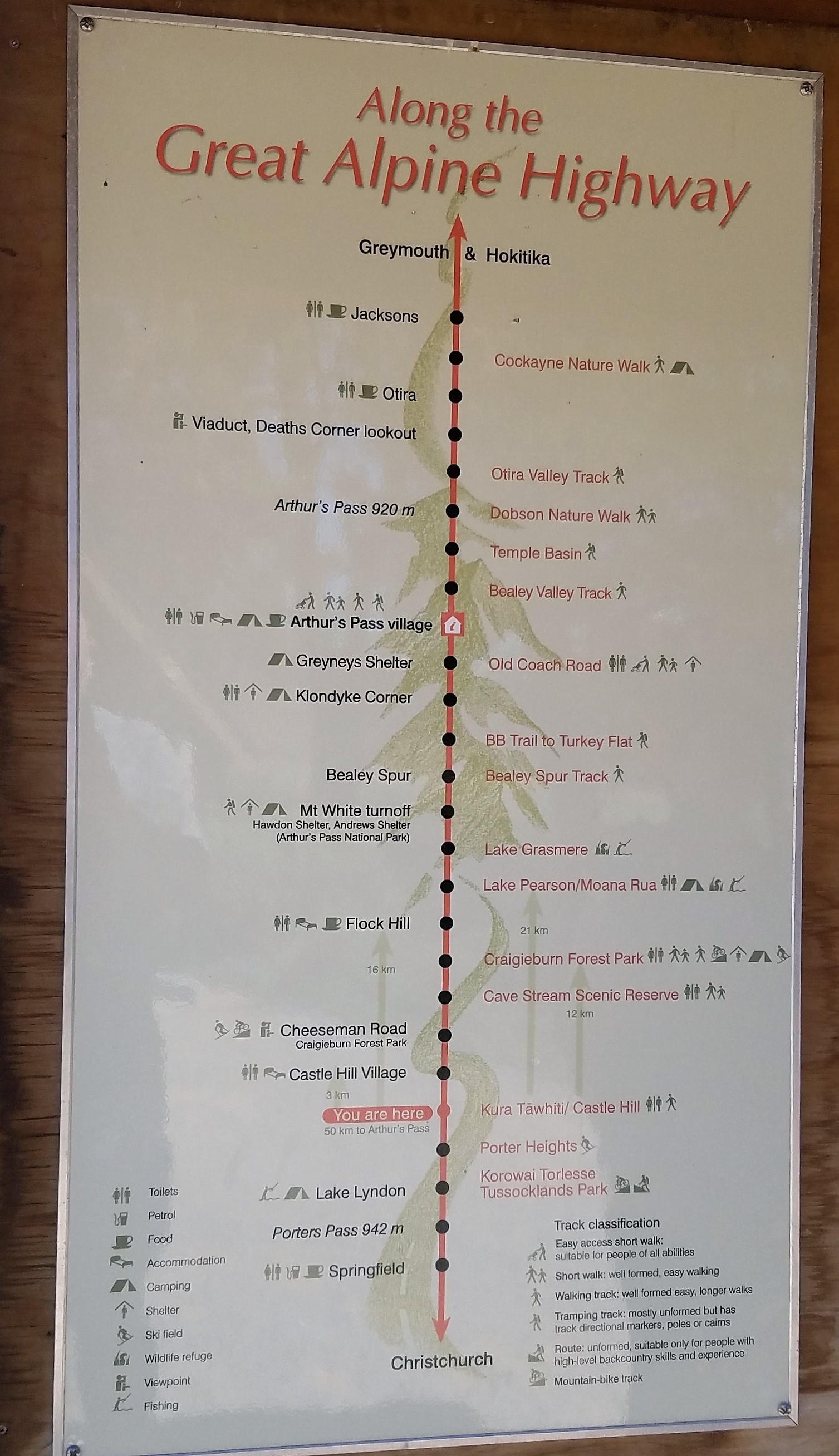 We were staying in Sheffield, which is the next village on the highway after Springfield. Arthurs Pass and Temple Basin are pretty deep in the mountains.