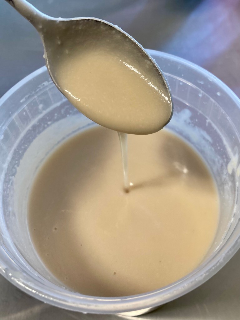 On my way to and from the commercial kitchen I worked out of I’d listen to podcasts, and one day an episode topic was shio koji. They had used it in a marinade for fried chicken and claimed it made the chicken really juicy and gave an umami flavor boost. What is it? It’s a fermentation of koji rice (or barley). So easy to make. Koji rice, salt, and water. I can see you still have questions.